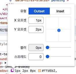 첫 번째 박스 그림자(1px 2px 0px #ffd6b2)는 다음과 같은 형태입니다.