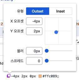두 번째 박스 그림자(-4px 2px 0px #ffc089)는 다음과 같은 형태입니다.