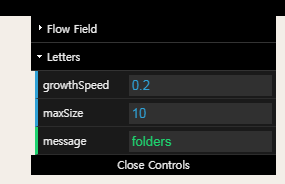 gui.add(text, 'growthSpeed', -5, 5); // Min and max