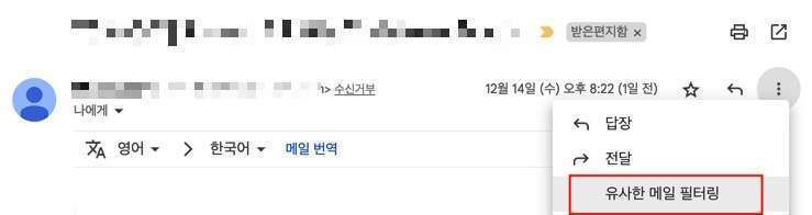 [유사한 메일 필터링]을 클릭합니다.