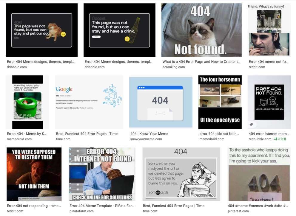 WWW에서는 404의 표시가 자주 보이기 떄문에 404는 “사람이나 물건을 찾을 수 없다”는 것을 의미하는 말이 되었습니다. 유머러스한 404페이지를 만드는 것이 유행하거나, 여러가지 404페이지를 모으는 것만을 목적으로 한 사이트가 만들어지거나 하고 있습니다.