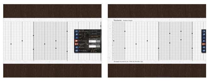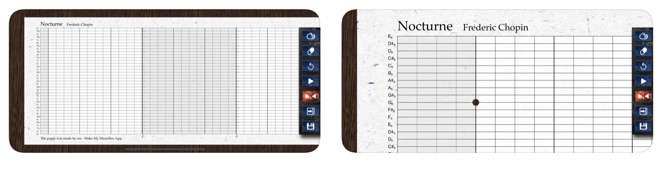 종이의 그리드 아무 곳이나 터치합니다. 종이에 구멍이 뚫리면 메모가 추가됩니다. 소리도 있어서 실제 악보를 쓰는 듯한 느낌을 받을 수 있습니다.