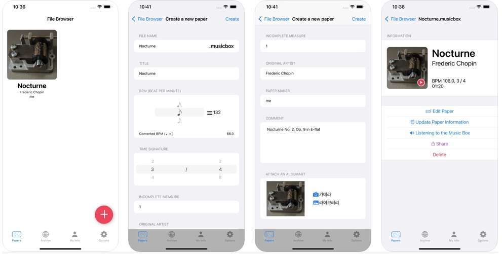 iPhone/iPad에서 뮤직박스가 다시 태어났습니다. 나만의 오르골과 악보를 만드십시오.
