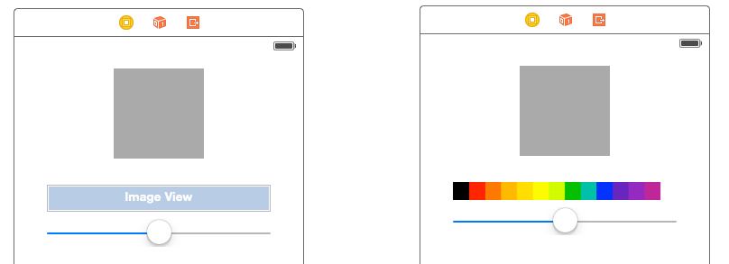 선택한 색상을 표시하는 UIView (위 그림에서는 회색 네모박스), 색상 선택을 표시하는 UIImageView 및 색상을 선택하는 UISlider가 있습니다. UIImageView에서 다음 이미지를 사용했습니다.