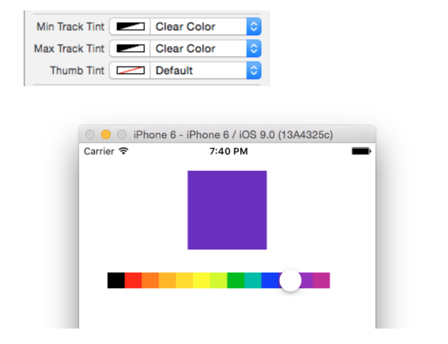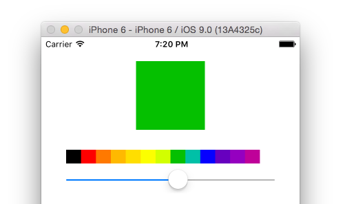 UI 요소를 뷰 컨트롤러(View Controller)에 연결하고 다음 코드를 사용하여 슬라이더 위치를 색상으로 변환하십시오.