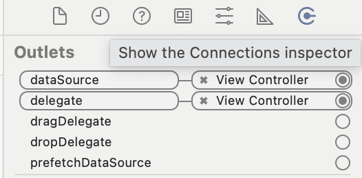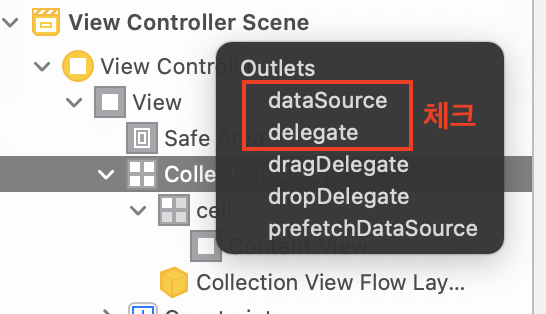 dataSource,delegate메뉴를 클릭하여 체크해줍니다.