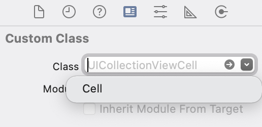 커스텀 셀을 선택한 후, Identity Inspector 메뉴에서 Class 를 위에서 작성한 Cell 클래스로 지정합니다.