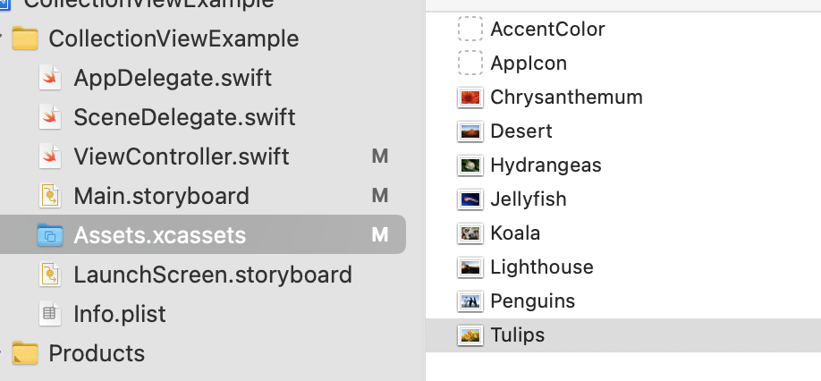 먼저 Assets.xcassets에 사진 파일들을 저장합니다.