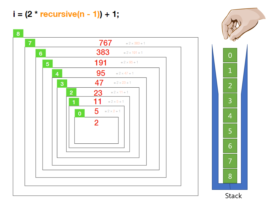 재귀 함수는 예를 들면 ‘꿈 속의 꿈’ 같은 것이다. 꿈에서 꿈을 꿔서 깨어났더니 또 꿈 꾸는 중이다 같은 그런 경우..