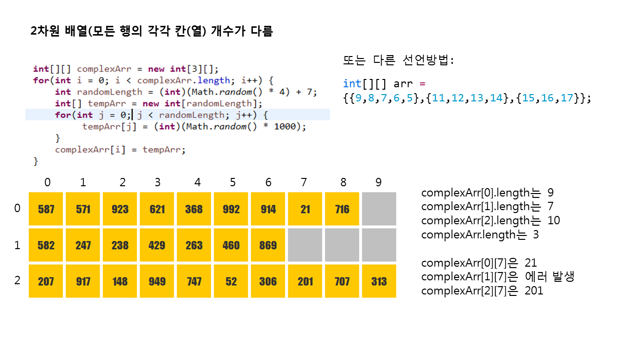 array.length를 사용해도 상관없습니다. - 행과 열의 크기가 다른 경우: