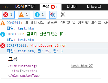 XML을 다루는 과정을 간략화한 위 코드는 크롬에서는 아무런 문제가 없는데 익스플로러에서는 다음 오류가 발생한다.