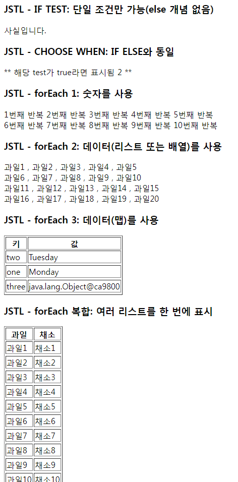 <h3>JSTL - forEach 2: 데이터(리스트 또는 배열)를 사용</h3>