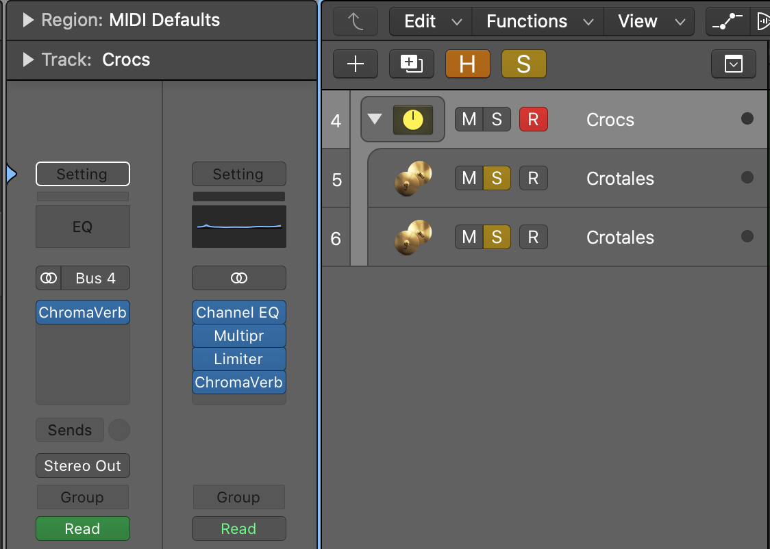 3. Summing 스택 안에 Crotales 트랙을 하나 더 생성합니다.