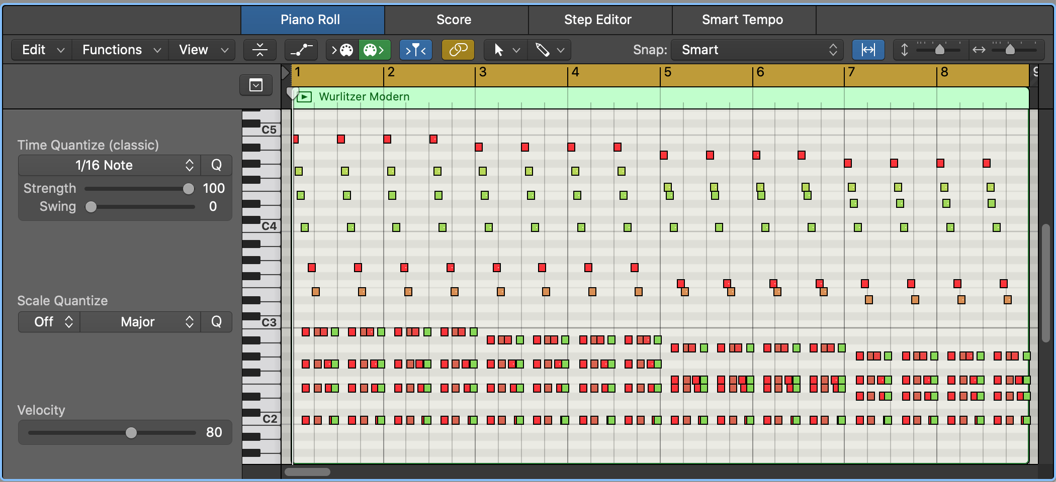 이것을 들리는 그대로 피아노 롤로 옮겨서 작업을 하고 싶을 때가 있습니다. MIDI FX가 적용되고 나서 실제 재생되는 음은 아래와 같습니다.