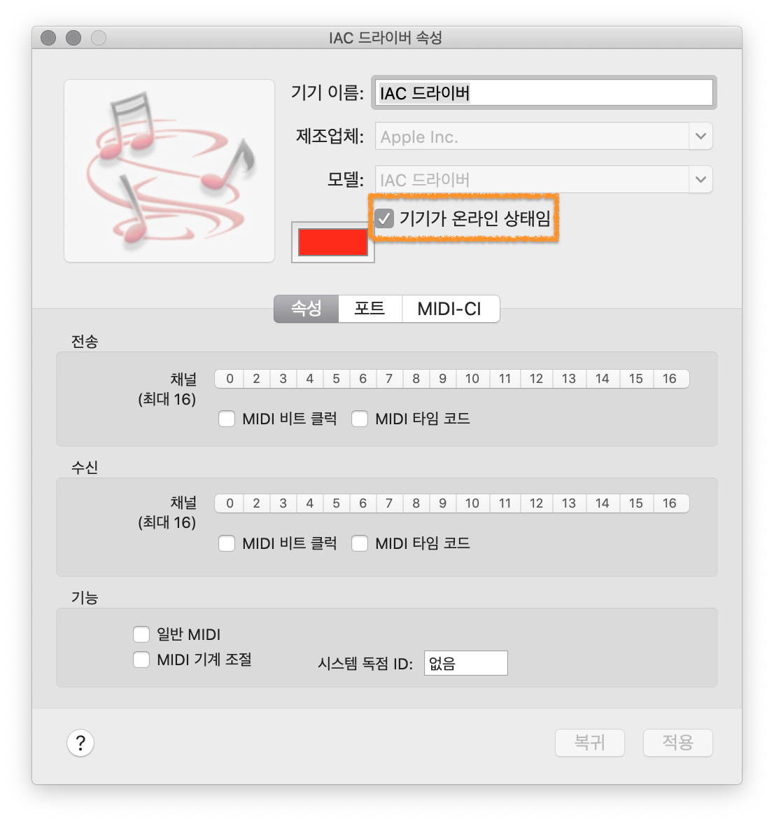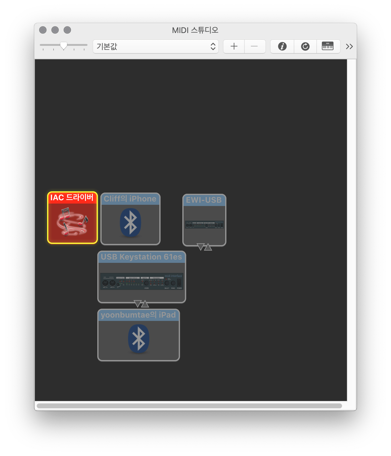 미디 스튜디오 메뉴를 열면 [IAC 드라이버]라는 네모 상자가 있습니다. 이것을 더블 클릭합니다.
