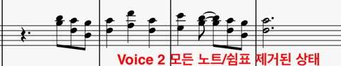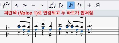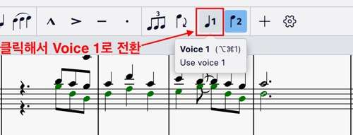 - 보이스 2의 악보를 보이스 1로 변경합니다.