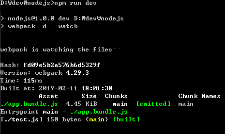다시 번들 파일을 실행하면 파일을 저장만 했음에도 watch 옵션이 작동하여 자동으로 컴파일이 된 것을 확인할 수 있습니다.