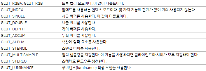 glutInitDisplayMode(GLUT_DOUBLE | GLUT_RGB);