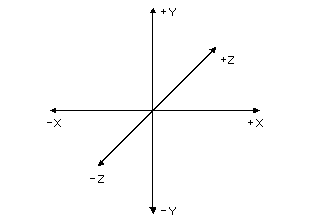 OpenGL의 3차원 공간은 다음과 같은 좌표계로 정의되어 있다.