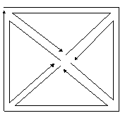 GL_TRIANGLE_FAN 모드는 항상 반시계 방향을 유지하며 윗변 삼각형 4개는 모두 반시계 방향으로 그려져 있다. 그래서 관찰자가 바라보면 쪽이 앞면이다. 반면 아래쪽의 흰색 밑면은 시계 방향으로 되어 있다. 왜냐하면 관찰자가 바라보는 쪽이 뒷면이고 피라미드를 뒤집었을 때 보이는 면이 앞면이기 때문이다. 다섯면 모두 피라미드 속이 아닌 바깥쪽이 앞면으로 지정되어 있다. (??)