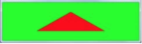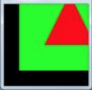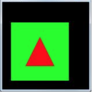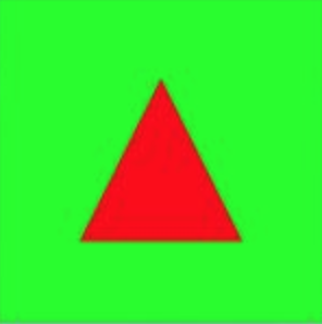 투영에 대해서는 별다른 지정을 하지 않았으므로 클리핑 영역은 모든 축으로 -1 ~ 1사이이다. DoDisplay에서 -1 ~ 1 영역을 가득 채우는 초록색 사각형을 그렸다. 이 사각형은 클리핑 영역을 표시한다. 그리고 안쪽에 빨간색 삼각형을 그렸다.