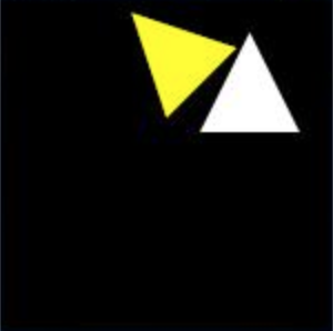 이번에는 far를 조정해 보자. (o, l키) -far를 0보다 더 큰 값으로 조정하면 피라미드의 뒤쪽이 잘리며 0.8보다 더 커지면 아무것도 보이지 않는다. 피라미드를 회전한 상태에서 near, far를 조정해 보면 비스듬하게 잘리기도 한다.