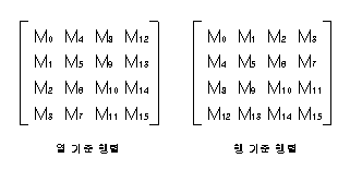 메모리에서 4*4 행렬을 표현하는 방법은 여러 가지가 있는데 일단 다음 두 가지를 생각할 수 있다.