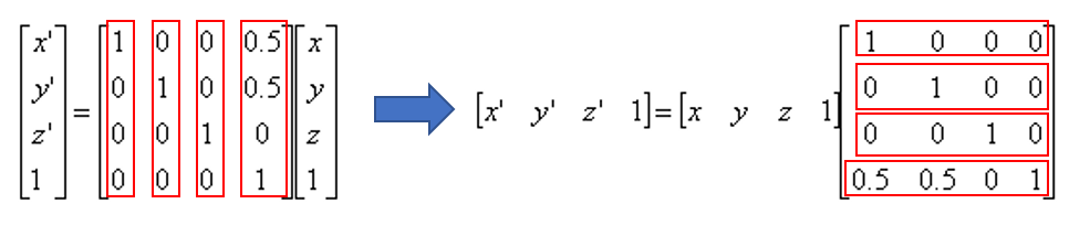 x’ = x + 0.5 y’ = y + 0.5 z’ = z 1 = 1