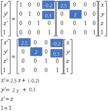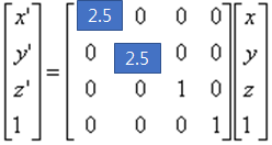 x’ = 2.5 * x y’ = 2.5 * y z’ = z 1 = 1