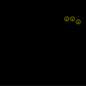 xmove를 모두 20으로 지정했으므로 비트맵 하나를 출력한 후 오른쪽으로 20픽셀만큼 이동한다. 비트맵 폭인 16보다 4만큼 더 주어 약간씩 여백을 띄웠다. 만약 ymove를 20으로 지정하면 비트맵은 세로로 연이어 출력될 것이다. xmove, ymove는 비트맵을 연속 출력할 때 방향과 거리를 지정하는 인수이다.