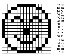 다음 예제는 앞에서 디자인한 16 * 16 크기의 비트맵을 출력한다.