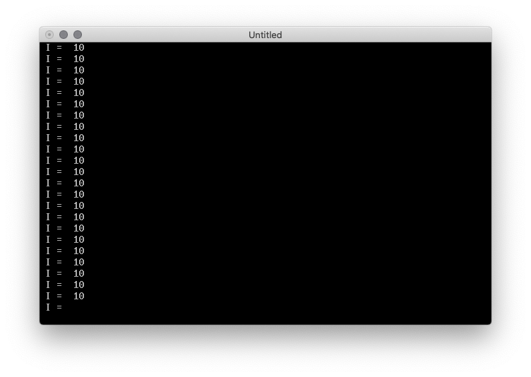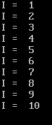 프로그램을 종료하려면 END 키워드를 사용합니다. 통상적으로 코드의 맨 마지막에 삽입하거나, GOTO 문에 조건부 종료 조건을 설정할 때 사용합니다. 아래 예제는 GOTO가 반복될 때마다 I를 1씩 증가시키고 I가 10이 되면 END를 실행해 프로그램을 종료합니다.