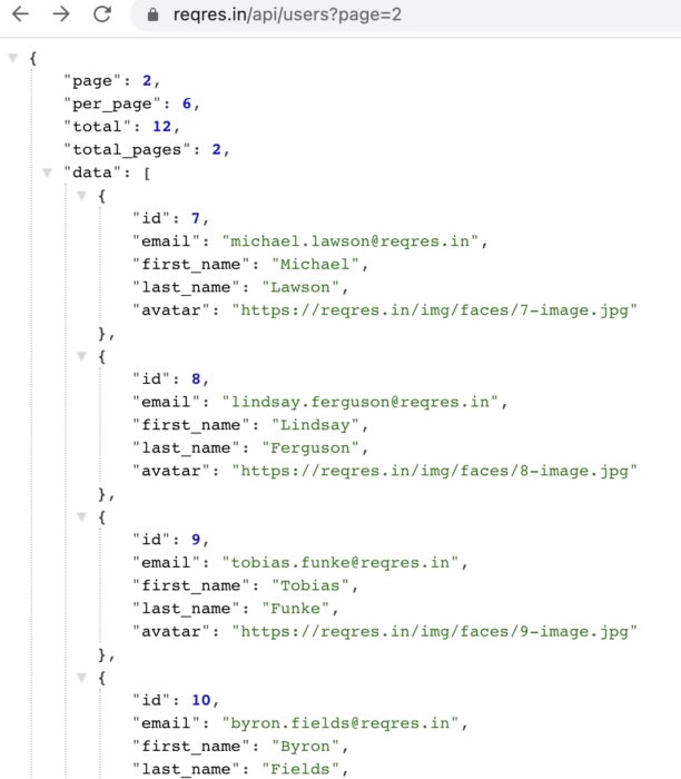 reqres.in 이라는 사이트를 이용하면, 별도의 서버를 만들거나 샘플 데이터를 생성하지 않고도 빠르고 편리하게 Restful API 환경을 마련할 수 있습니다.