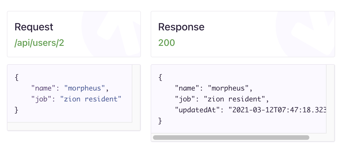 Reqres 에서는 다양한 시나리오를 제공하는데, 목록은 다음과 같습니다.