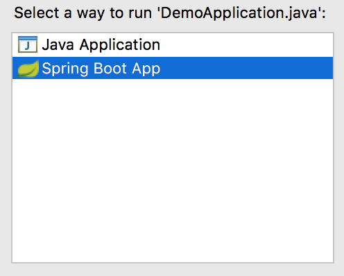 Demo(프로젝트 이름)Application.java 클래스를 실행합니다. 실행시 Spring Boot App으로 실행합니다.