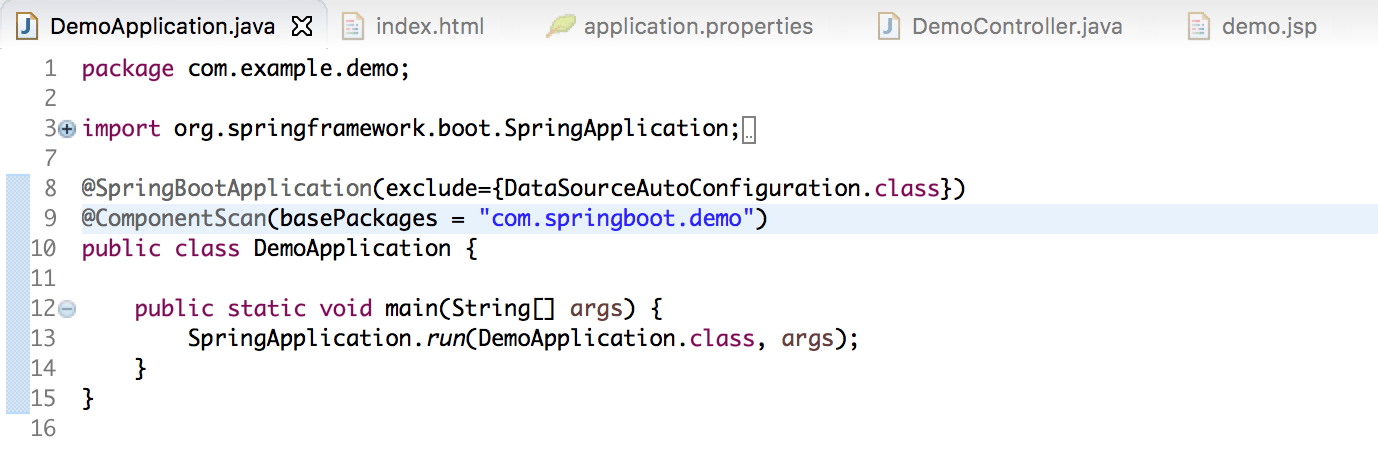 @EnableAutoConfiguration(exclude={DataSourceAutoConfiguration.class})