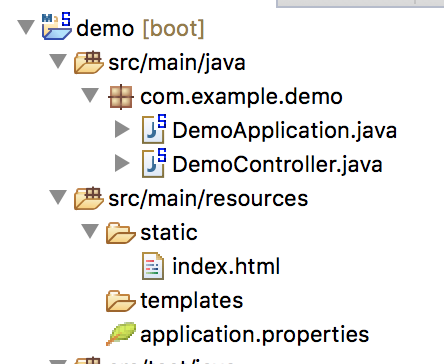 src/main/resources/static 폴더에 추가합니다. 예제로 index.html 파일을 작성해서 실행해보겠습니다.