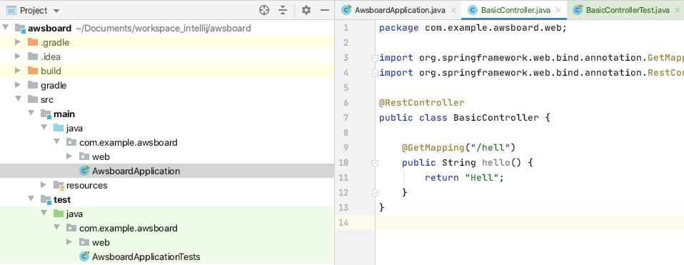 4. 패키지 내에 BasicControllerTest 클래스 생성