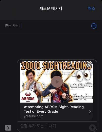예를 들어 메시지 아이콘을 클릭하면 아래와 같이 영상 URL이 메시지에 첨부됩니다.