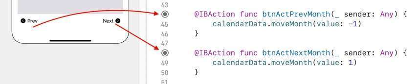 @IBAction func btnActNextMonth(_ sender: Any) {