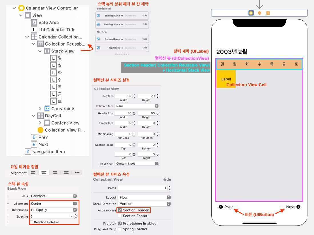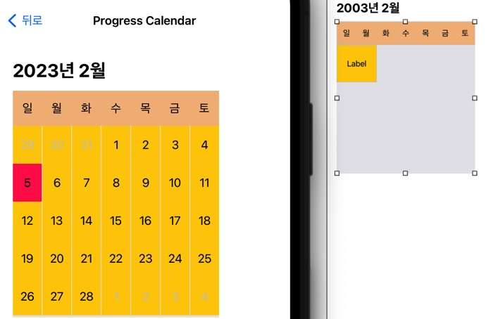 Swift(스위프트): 달력 그리기 (2) → Interface Builder 스토리보드 GUI 방식으로 그리기