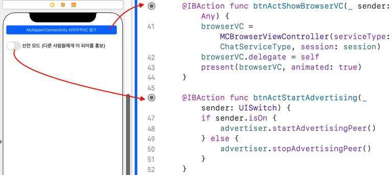 - MCNearbyServiceBrowser - 브라우저입니다. (이 포스트에서는 다루지 않습니다.)