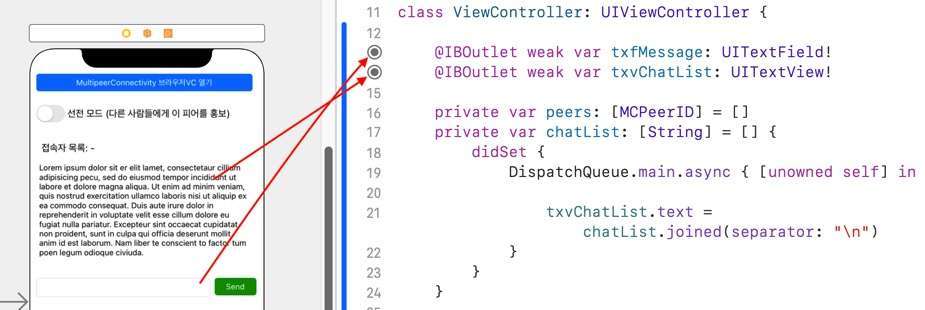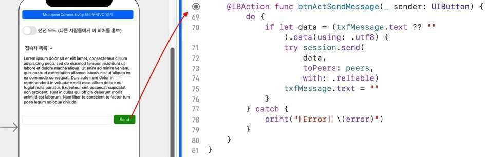 뷰 컨트롤러 파일에서 MultipeerConnectivity를 import 합니다.