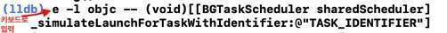 e -l objc -- (void)[[BGTaskScheduler sharedScheduler] _simulateLaunchForTaskWithIdentifier:@"TASK_IDENTIFIER"]