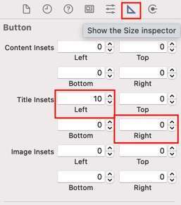 Show the Size Inspector버튼을 클릭합니다. Title Insets부분을 찾습니다- 이미지가 왼쪽에 있는 경우: