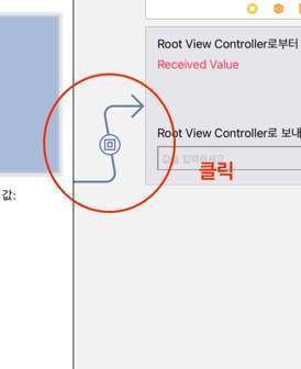스토리보드에서 빨간색 원과 같이 생긴 화살표를 클릭합니다.