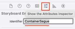 선택하면 Xcode의 오른쪽 상단에 Show the Attriutes Inspector라는 버튼이 있습니다. 클릭해서 Identifier를 지정합니다.