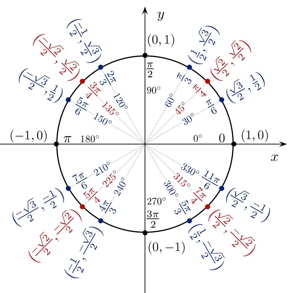 그래픽을 프로그래밍할 때 도(degree) 단위로 다시 변환하는 것보다 라디언 단위로 생각하는 것이 중요합니다. 라디언과 도 사이의 상관 관계를 보려면 Wikipedia에서 이 이미지를 살펴보세요.