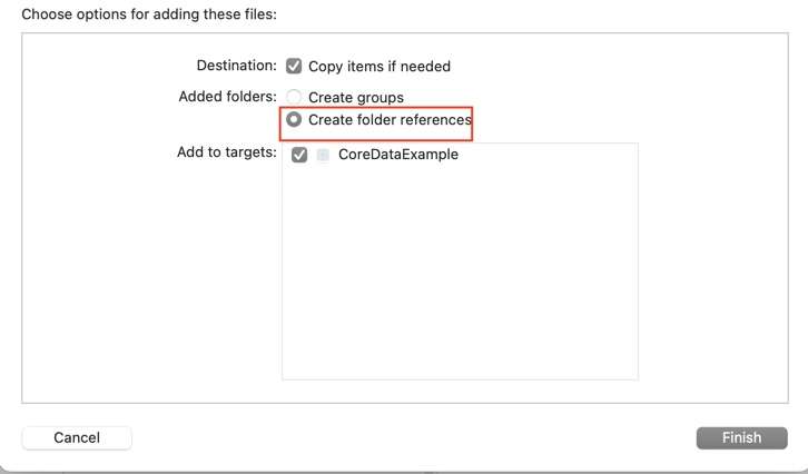 그러면 다음 창이 뜨는데 여기서 Create folder references를 선택합니다. 이 옵션을 선택해야 이미지 파일 등의 static 파일을 표시할 수 있습니다.