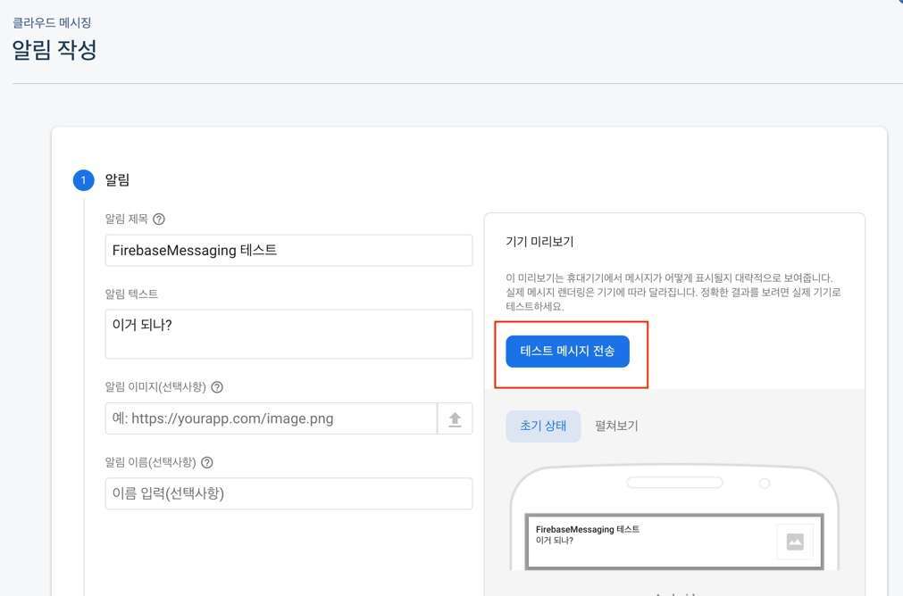 4: 파이어베이스 Messaging 콘솔에서 사전 테스트